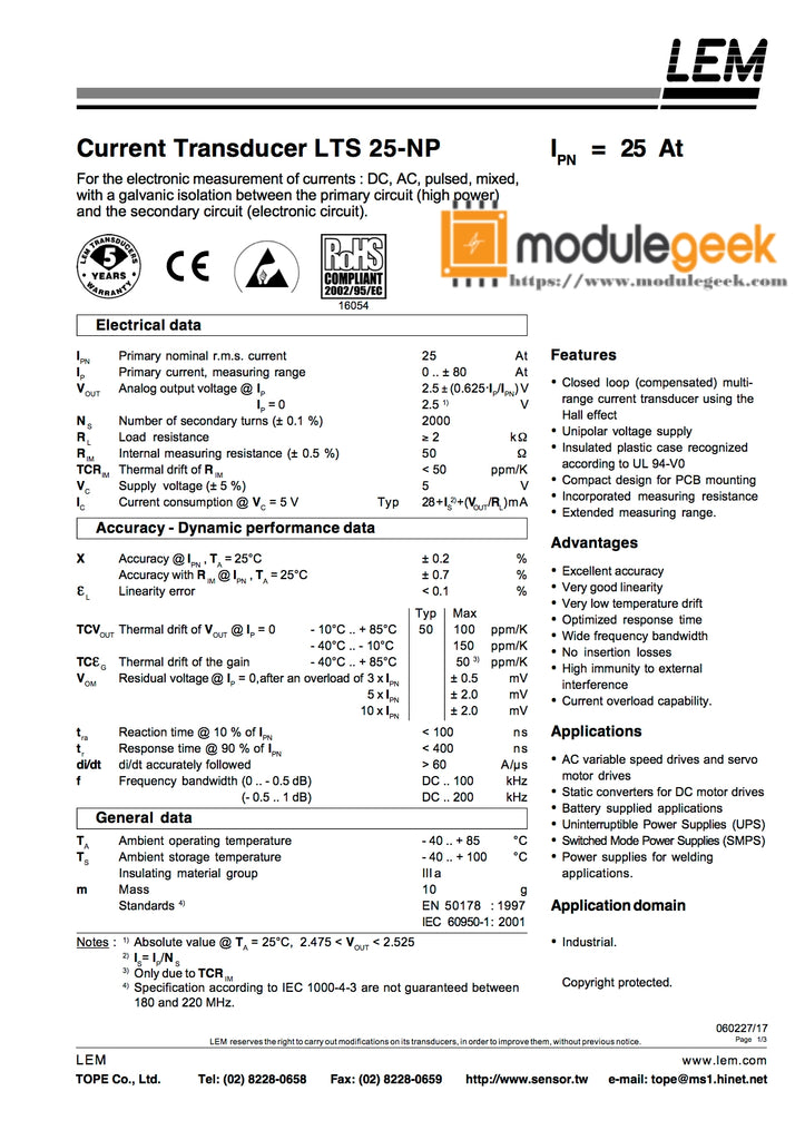 - POWER SUPPLY MODULE LEM LTS25-NP NEW 100% Best price and quality assurance